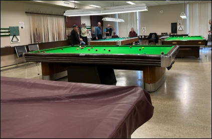 Members play billiards, snooker and any other pool game of their choosing. The