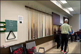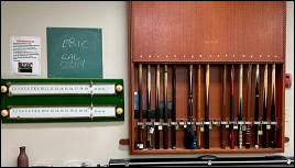 room is well-stocked with assorted cues, cue chalkers, etc. Come practice on