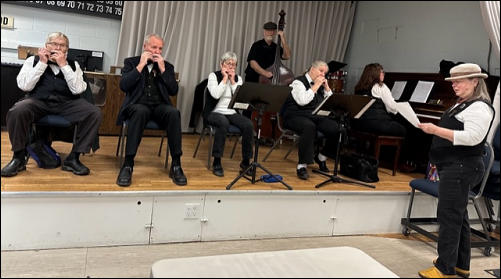 Tuesday, 8:30 a.m. on the stage in the Main Hall. We play favourite tunes and